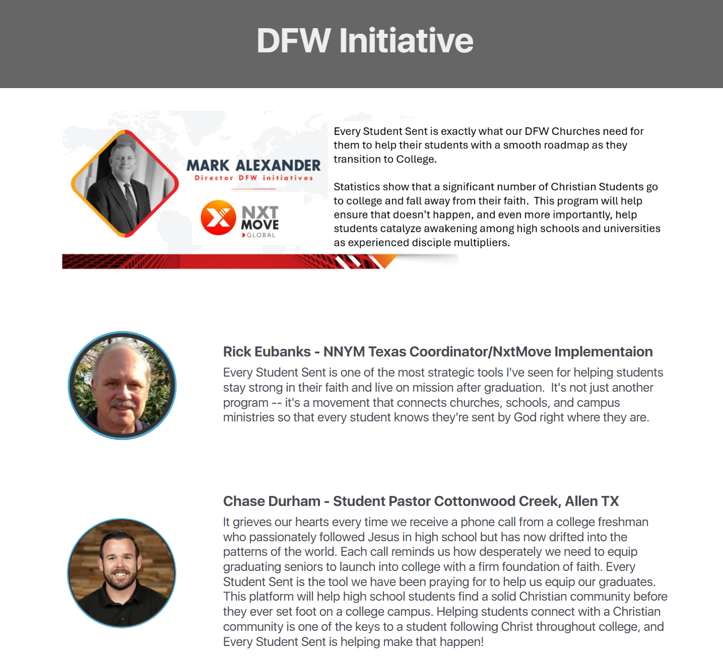 DFW is poised to lead the nation as an example city movement. You and your church can help make the class of '26 the most successful in history. Please join us in this effort by involving your church, Christian school, homeschool association, or by financially accelerating this awakening so we can all more than double Kingdom equipped disciples into the university and marketplace. Just message us at the bottom of this page so we can answer questions and assist in your area of interest.